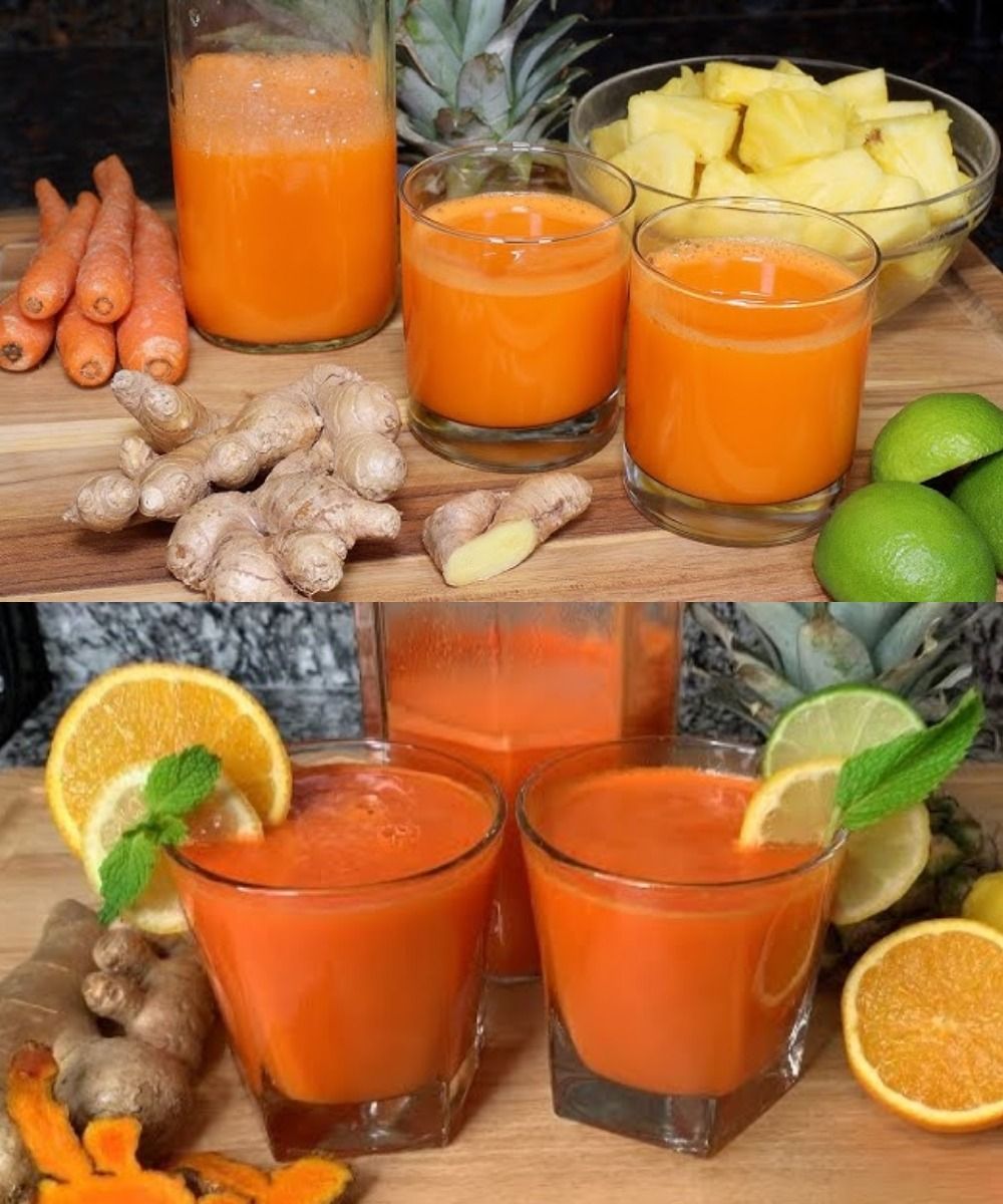 Vous cherchez un moyen naturel de renforcer votre système immunitaire ? Ce jus vibrant et riche en nutriments est votre solution ! Un puissant mélange d’ ananas, de curcuma, de carotte et de citron , cette boisson regorge de vitamines, d’antioxydants et de propriétés anti-inflammatoires pour vous permettre de vous sentir au mieux de votre forme.