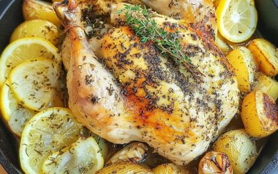 Poulet rôti au beurre citronné et pommes de terre