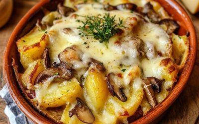 Tartiflette aux cèpes, champignons et crème épaisse