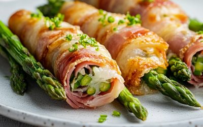 Pour 4 personnes Préparation : 25 minutes Ingrédients 16 asperges vertes fraîches 8 tranches de jambon cru (ou de bacon)…