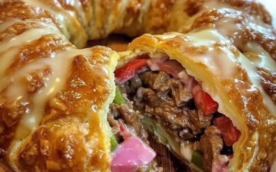 Croissant Philly Cheese Steak Ingrédients : 1 cuillère à soupe d’huile d’olive 1 oignon moyen, finement émincé 1 poivron vert…
