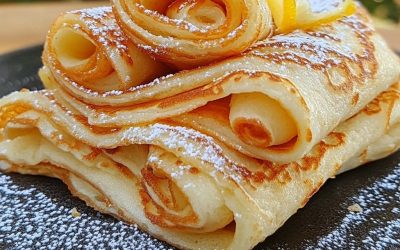 Crêpes roulées au citron et sucre glace Nombre de personnes : 4 Temps de préparation : 20 minutes (+ cuisson)…