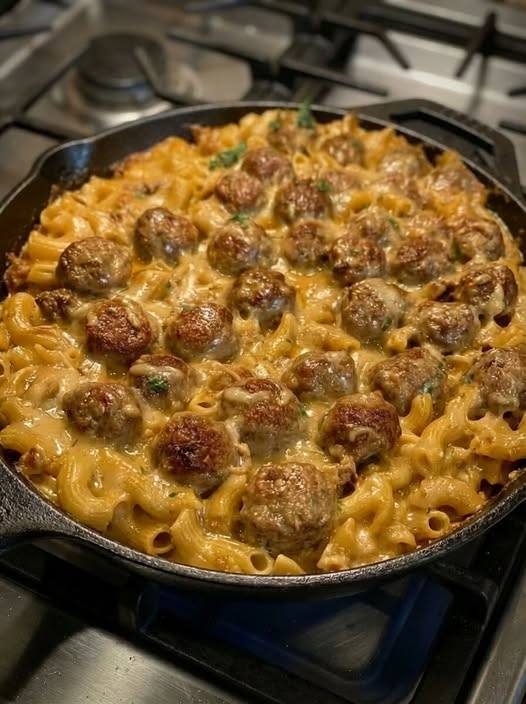Ce plat réconfortant associe de tendres boulettes de viande à la suédoise et des nouilles aux œufs, le tout cuit dans une sauce crémeuse et savoureuse et recouvrant de fromage suisse fondu.