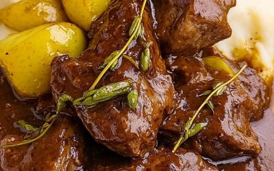 Bœuf Mijoté avec Sauce et Piments sur Purée de Pommes de Terre Ingrédients : 1 kg de bœuf (poitrine, paleron…