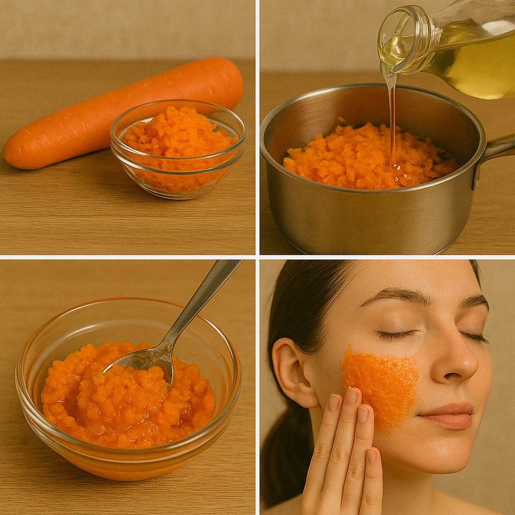 Mélangez les ingrédients : Dans un bol, mélangez la carotte écrasée ou râpée avec l’huile d’olive, le miel et le yaourt. L’huile d’olive hydrate et nourrit la peau, le miel a un effet hydratant et antibactérien, tandis que le yaourt apporte une hydratation supplémentaire et exfolie doucement la peau.