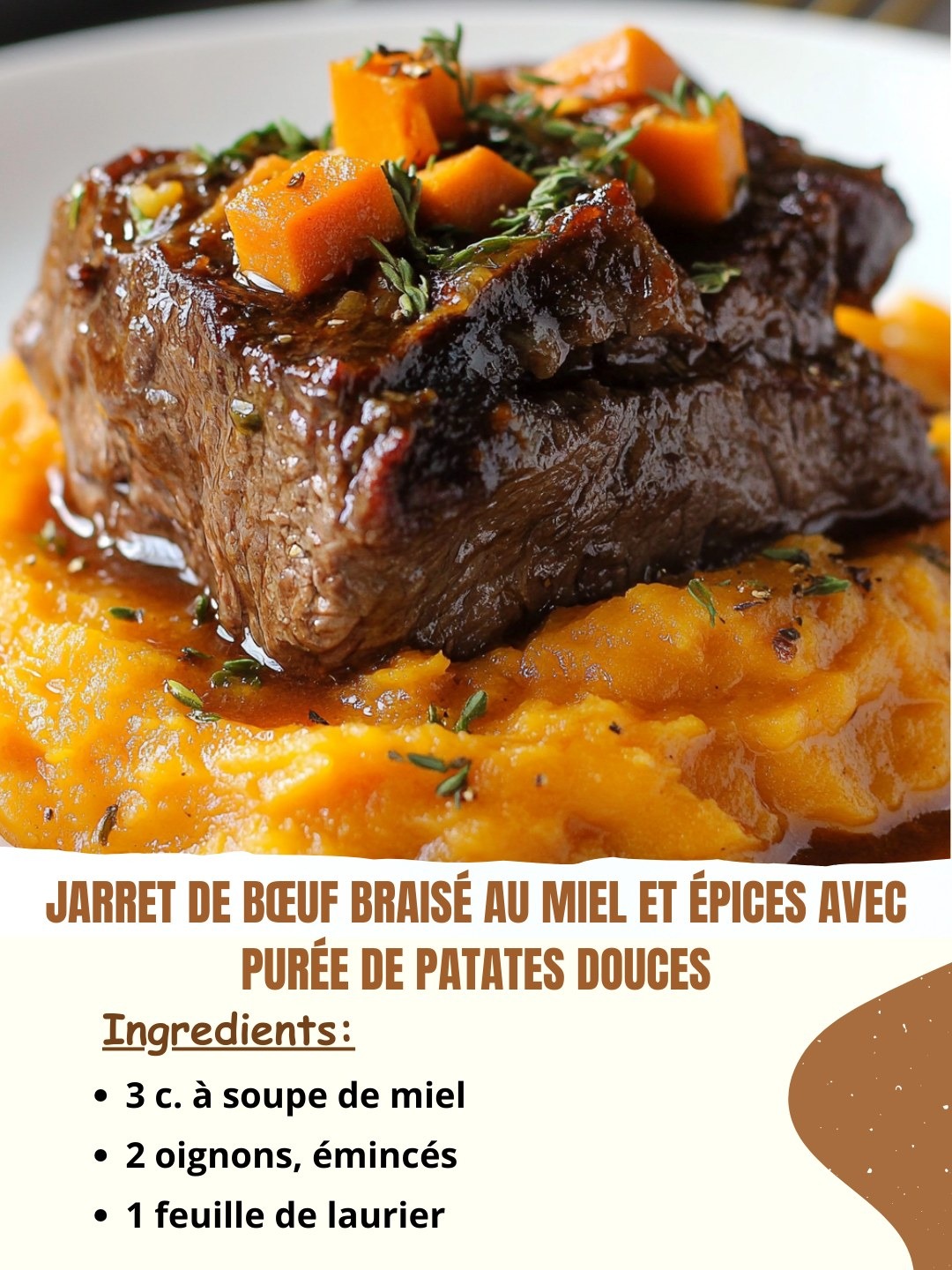 Jarret de Bœuf Braisé au Miel et Épices avec Purée de Patates Douces
