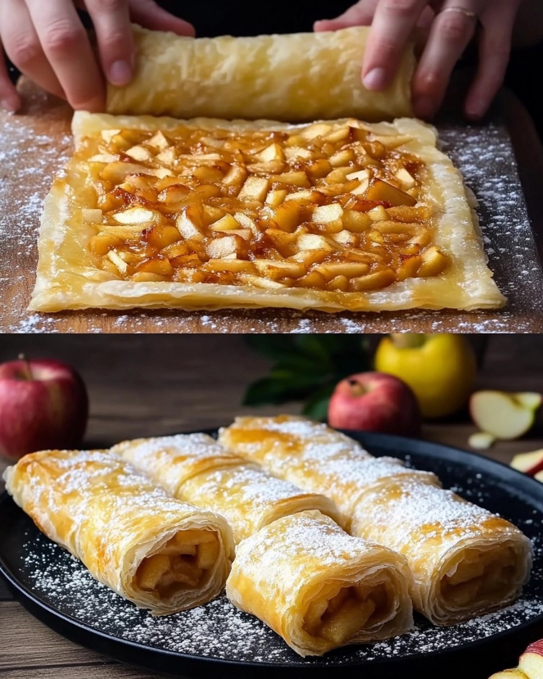 Envie d’un dessert rapide, parfumé et délicieusement croustillant ? Ces roulés feuilletés aux pommes sont parfaits ! En seulement quelques minutes, préparez un délice fruité qui embaumera la maison de douces notes de cannelle. C’est l’accompagnement idéal pour un thé ou pour clôturer un repas avec une touche sucrée. Prêt à essayer cette recette simple et irrésistible ?