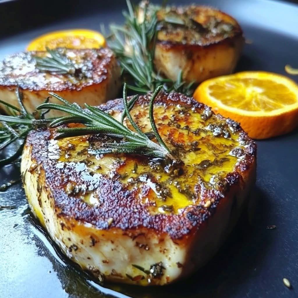 Steaks d’espadon glacés à l’orange et au romarin
